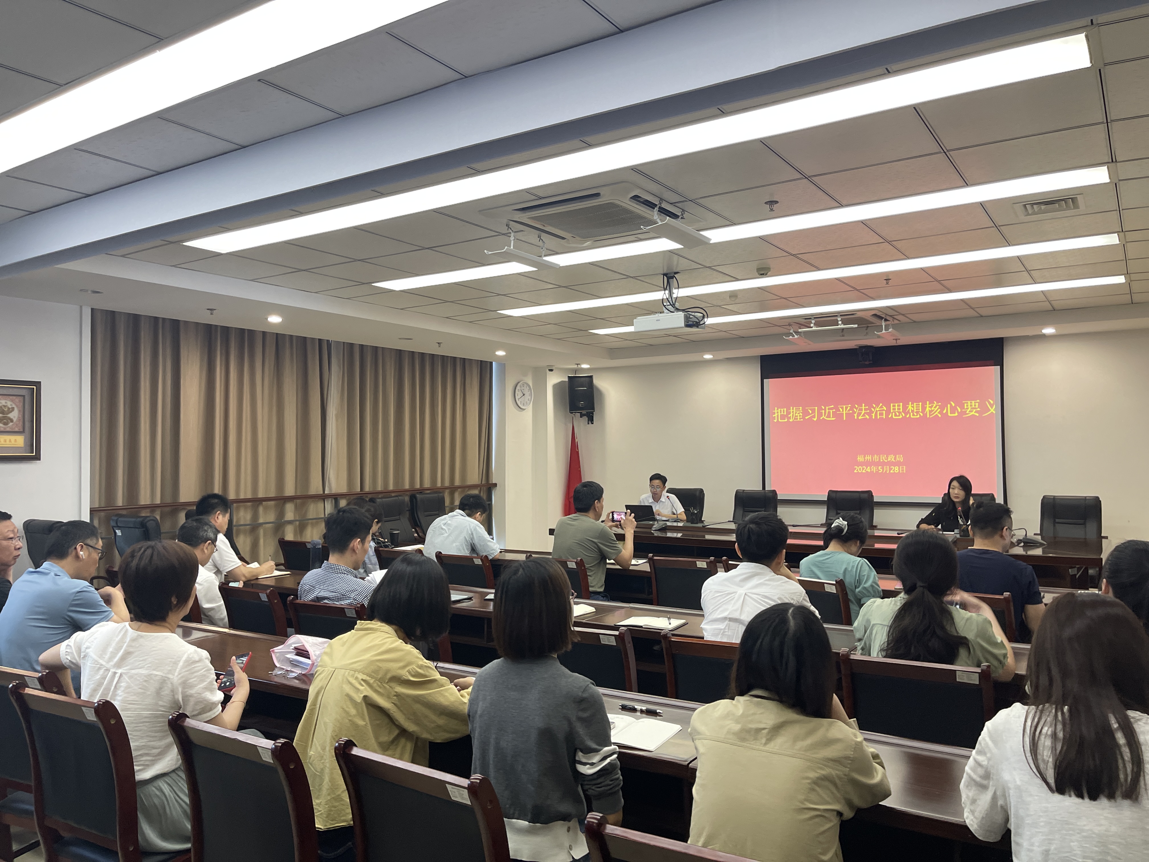 为学习贯彻习近平法治思想落实国家和省关于贯彻实施宣传民法典相关要求,提高民政干部依法履职能力,528日,福州民政局组织举办学习贯彻习近平法治思想 提高依法履职能力专题讲座,讲座邀请福建北河三律师事务所兰敏辉律师授课全局干部职工参加讲座