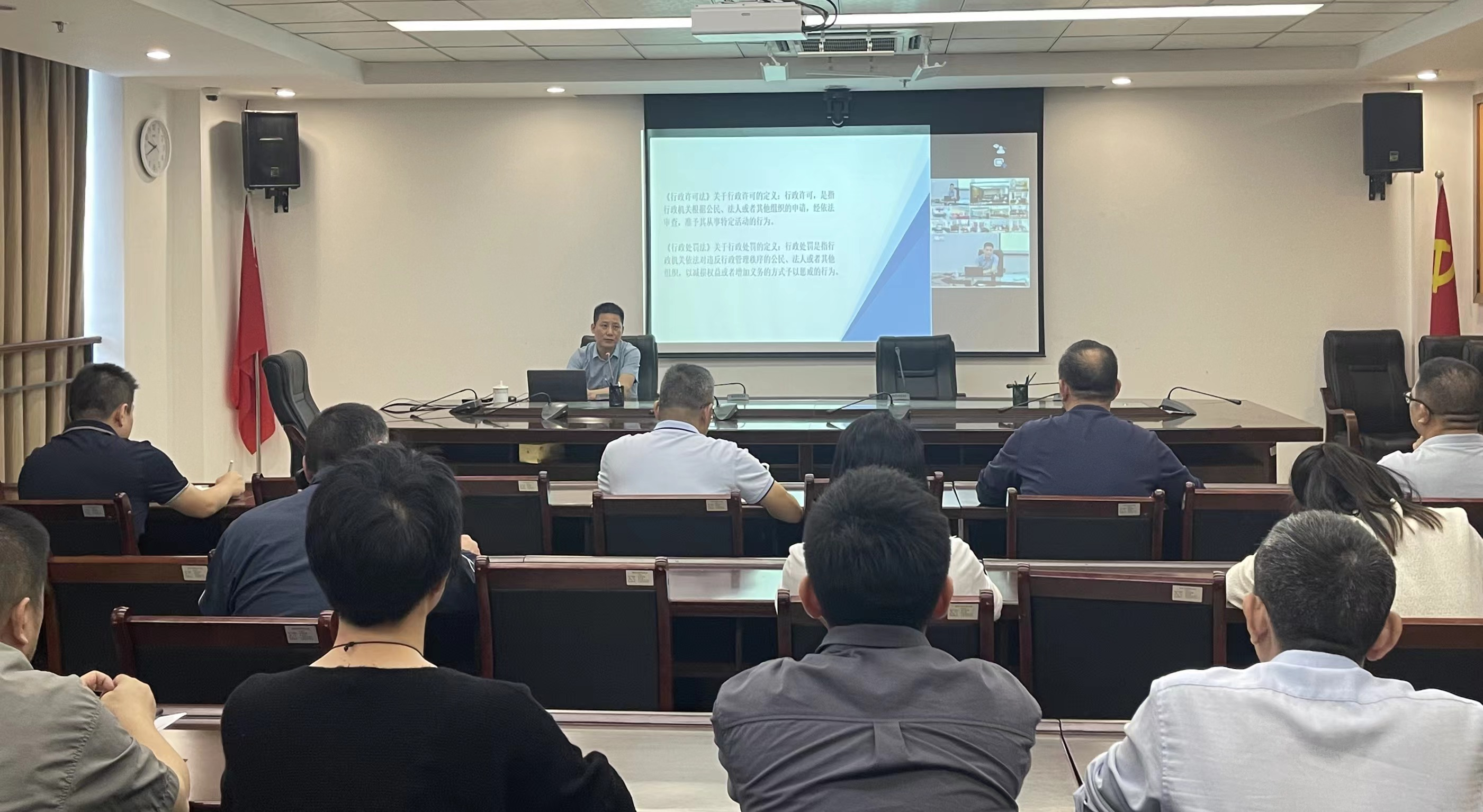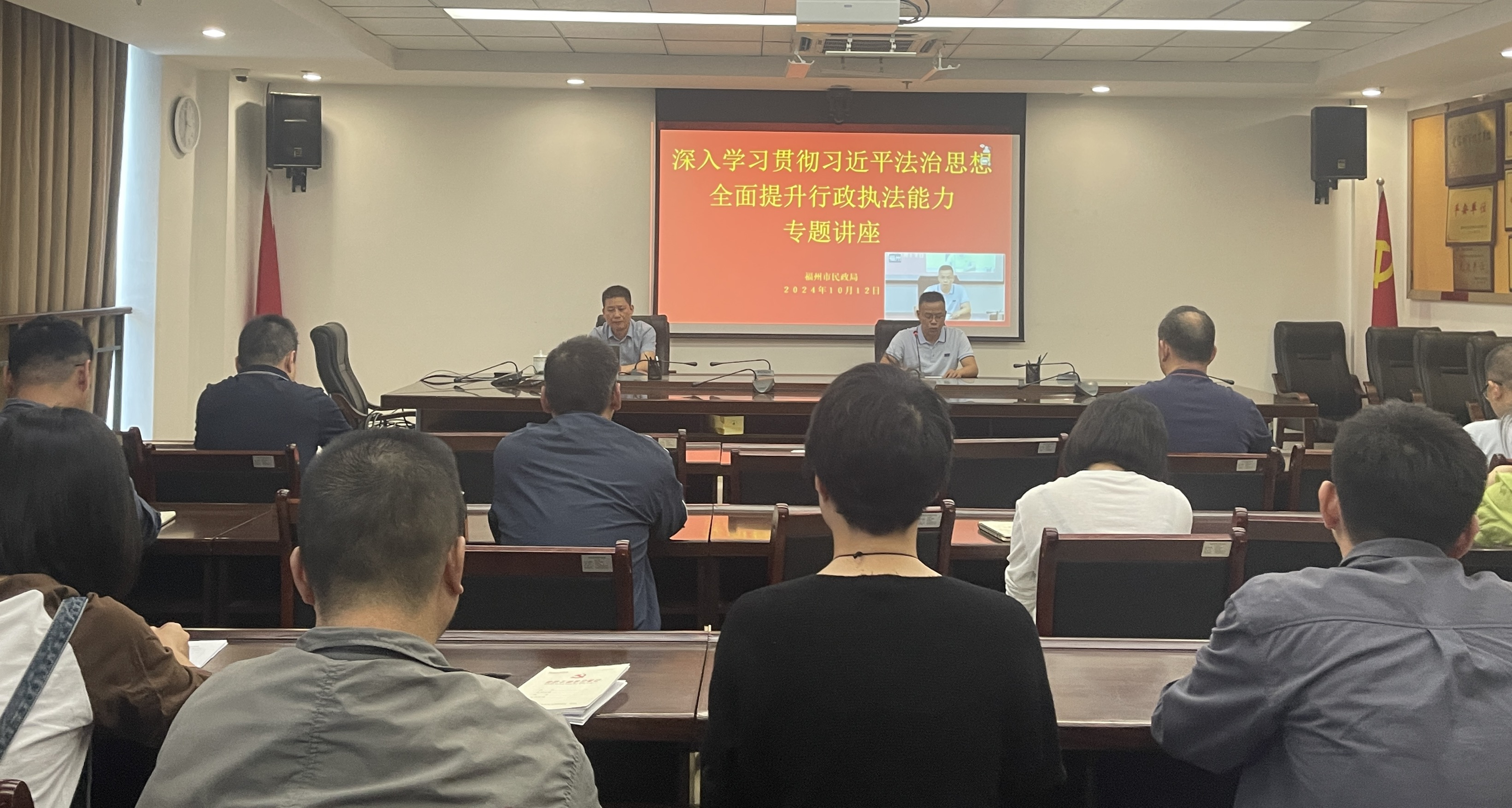 为学习贯彻习近平法治思想,进一步增强干部职工的法治思维和执法风险防范意识,提高民政系统依法行政的水平和能力,10月12日上午,西瓜视频 举办“深入学习贯彻习近平法治思想 全面提升行政执法能力”专题讲座。讲座邀请福州市司法局法治督察处处长游波进行授课,局机关全体干部职工及各县(市)区法规和执法人员合计100余人参加。