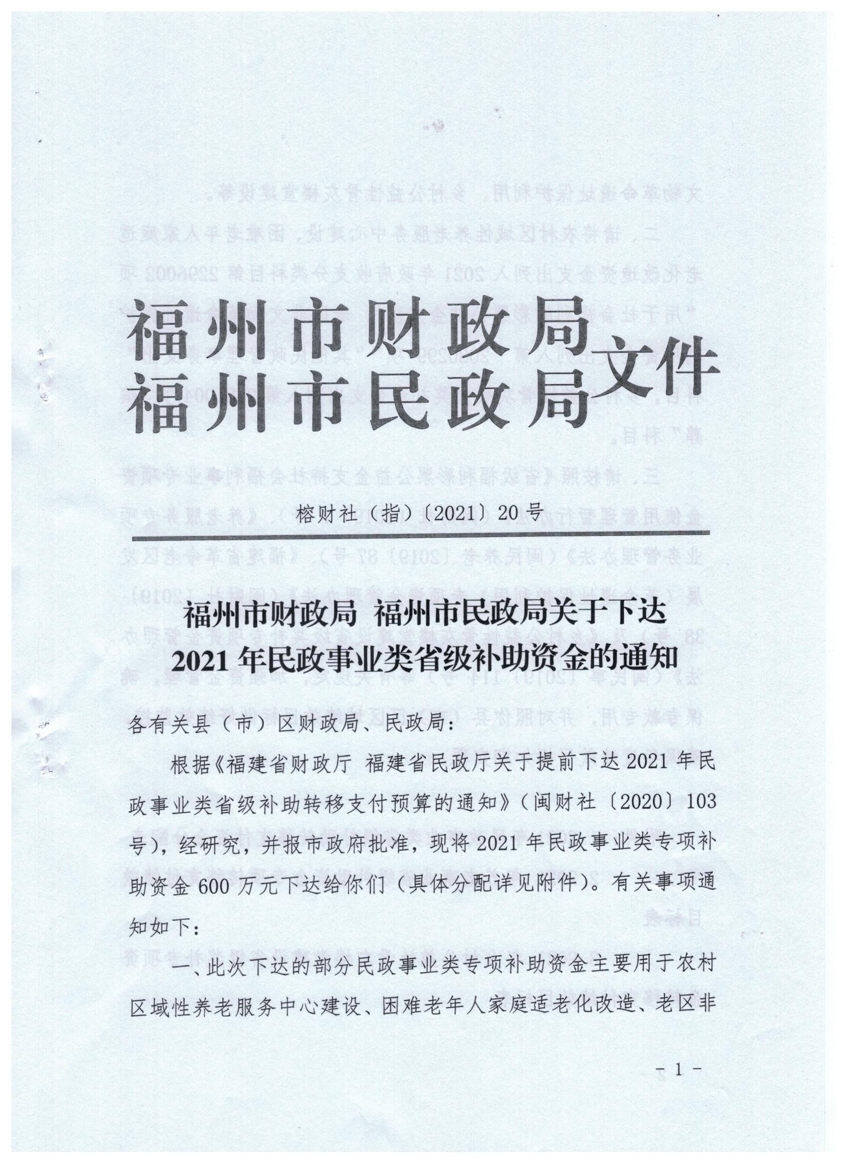 福州市财政局 西瓜视频 关于下达2021年民政事业类省级补助资金的通知