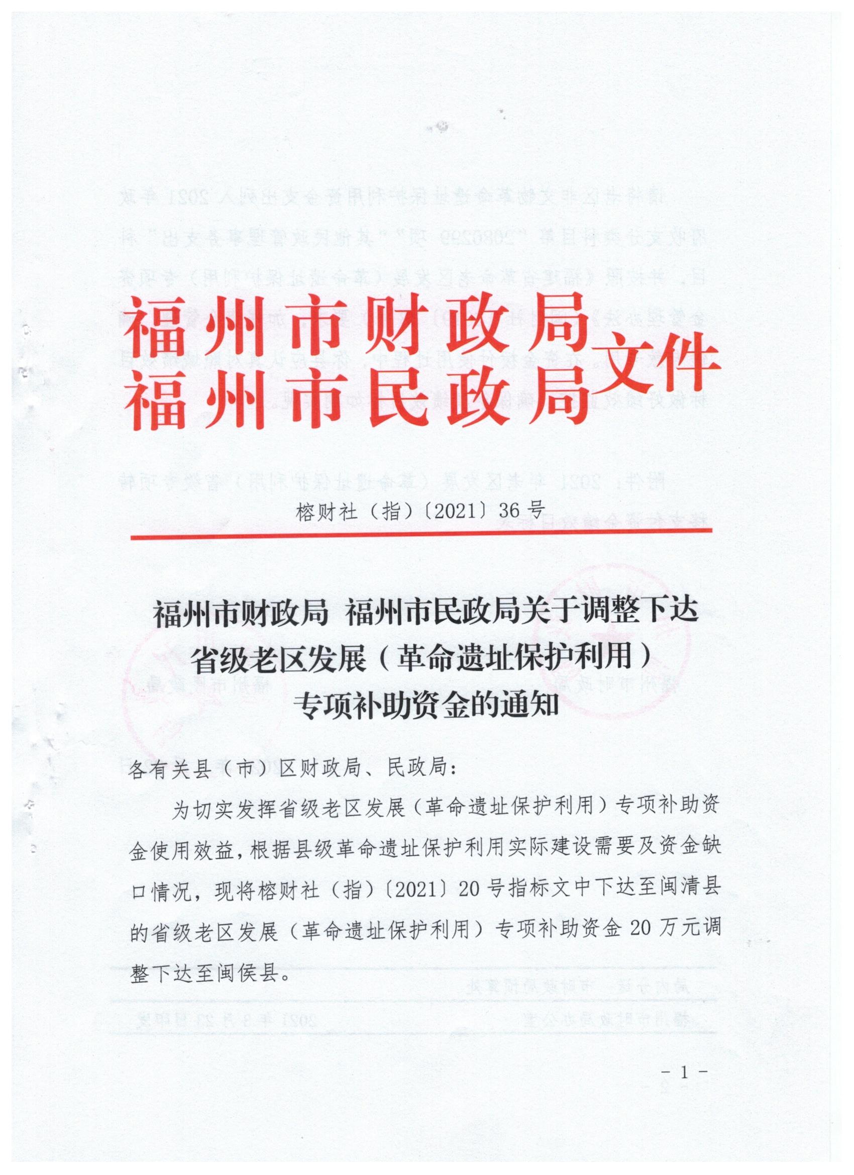 福州市财政局 西瓜视频 关于调整下达省级老区发展(革命遗址保护利用)专项补助资金的通知