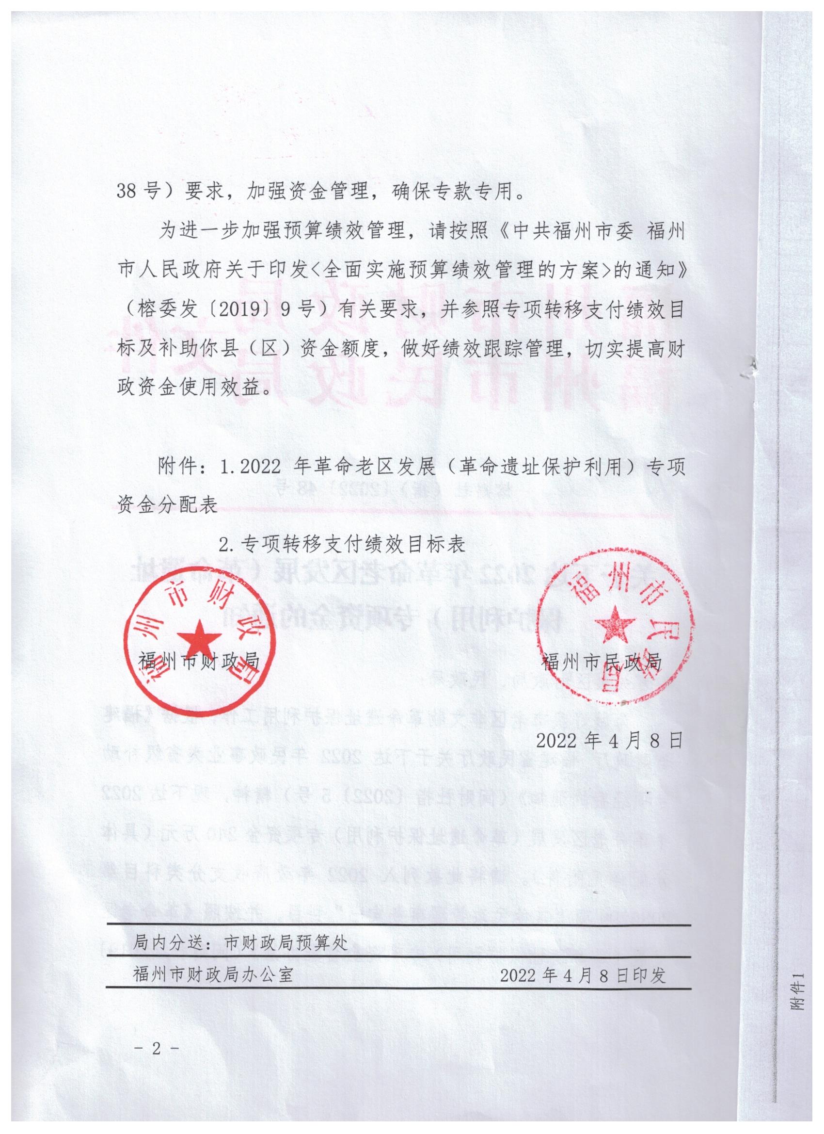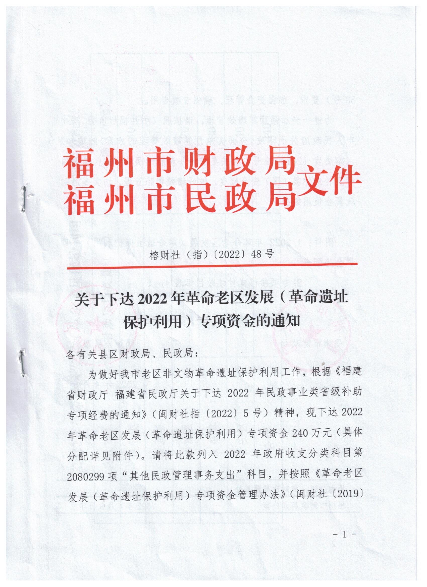 关于下达2022年革命老区发展(革命遗址保护利用)专项资金的通知