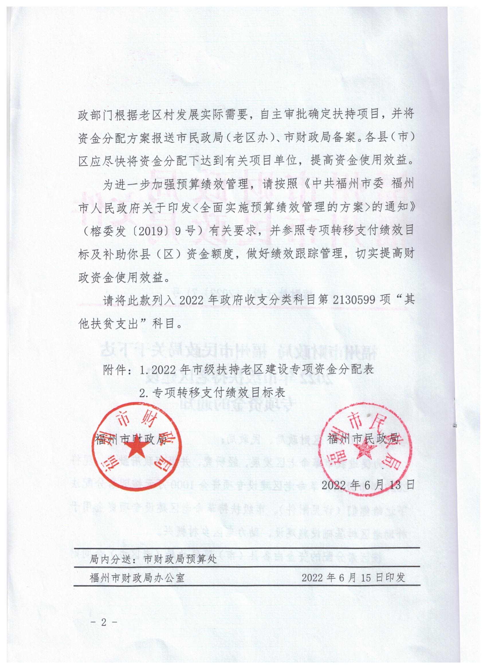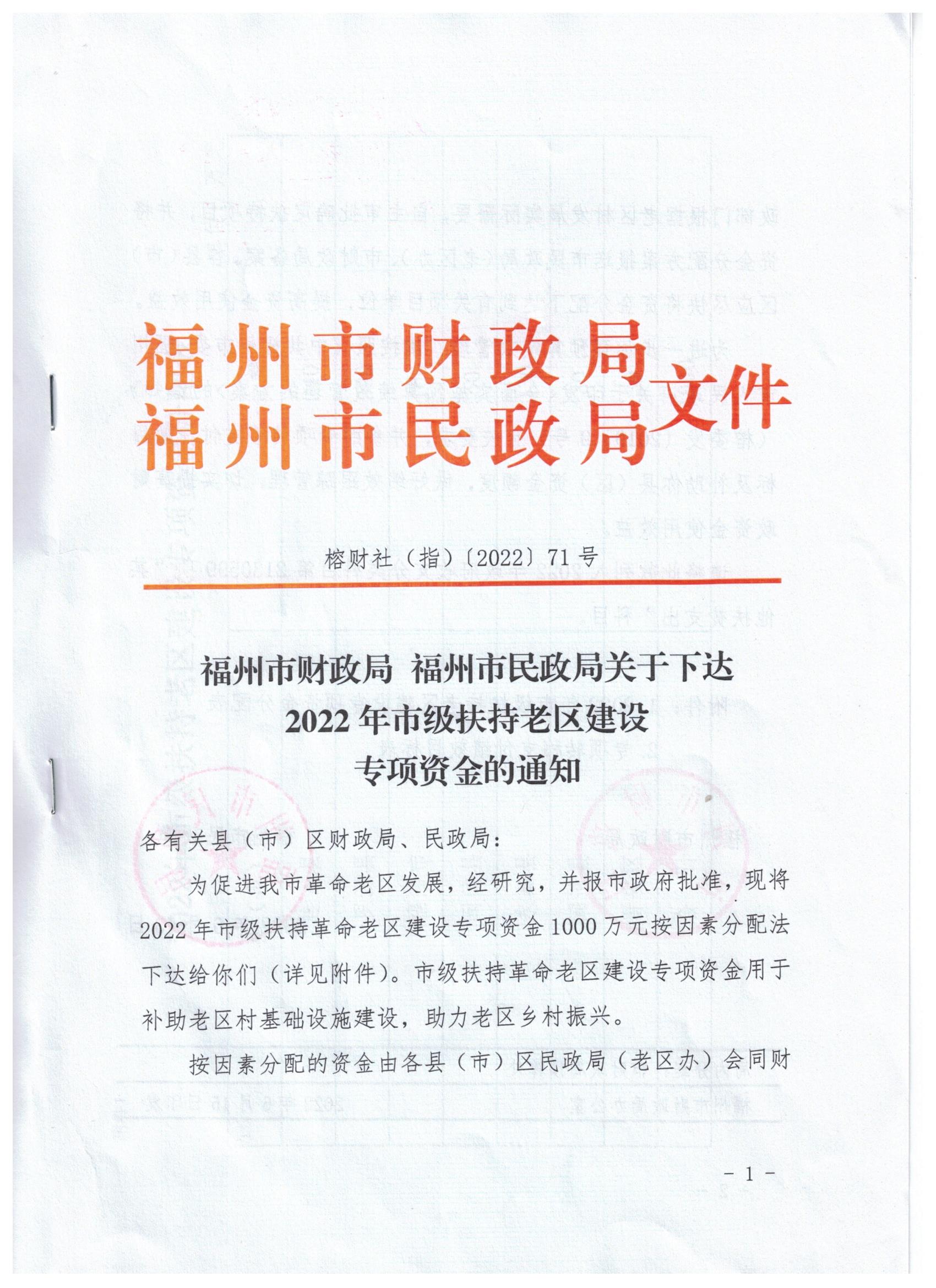 福州市财政局 西瓜视频 关于下达2022年市级扶持老区建设专项资金的通知