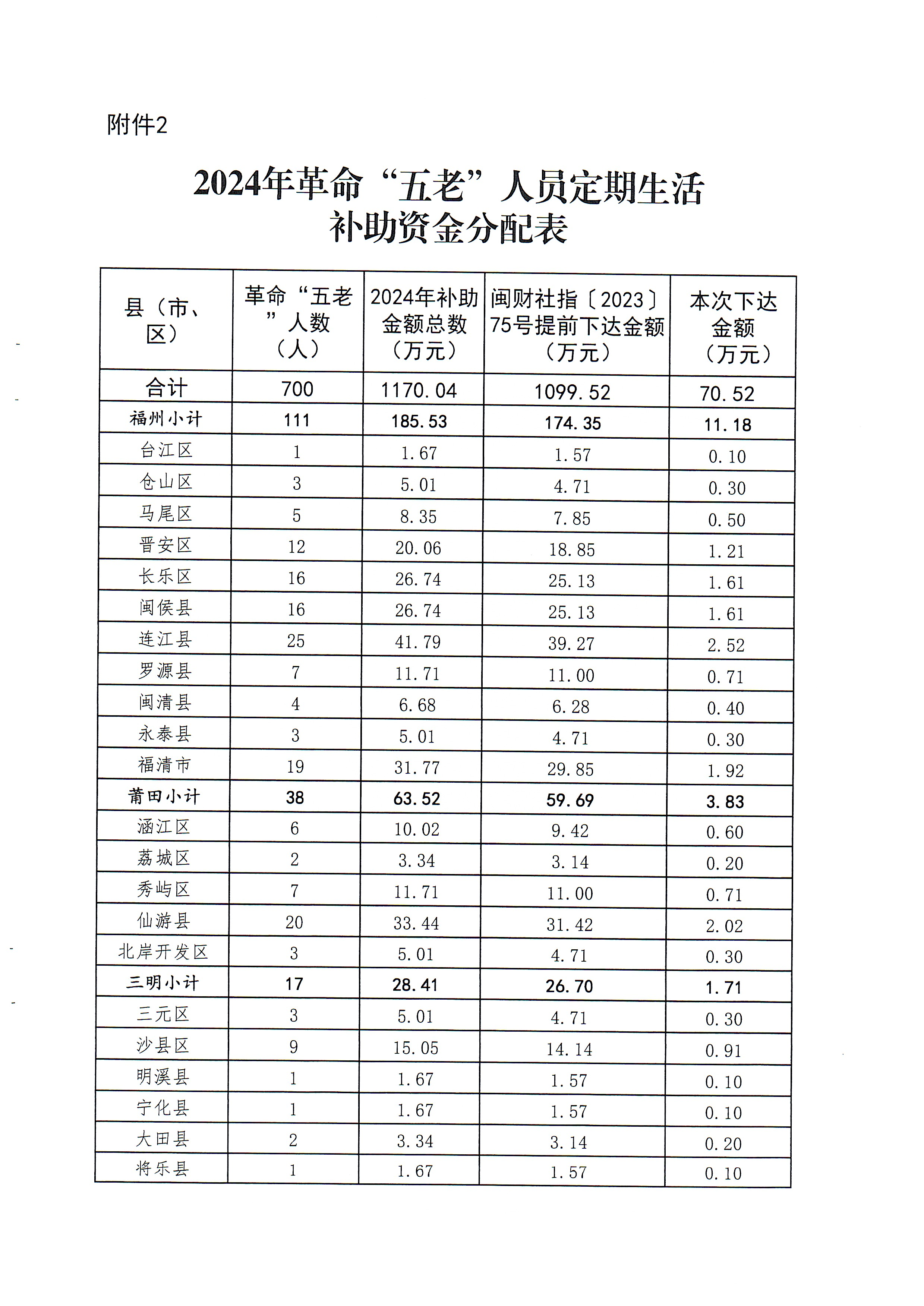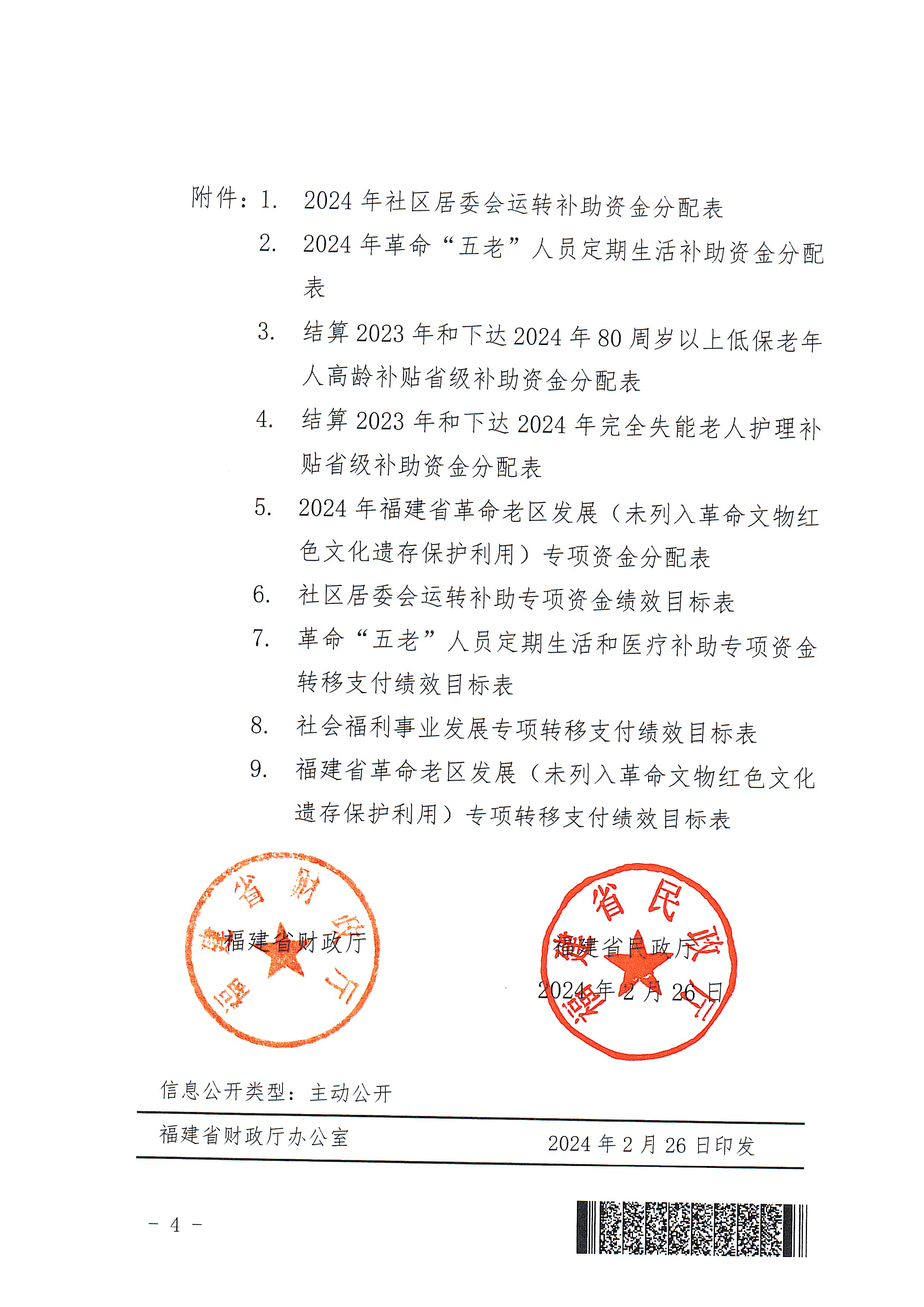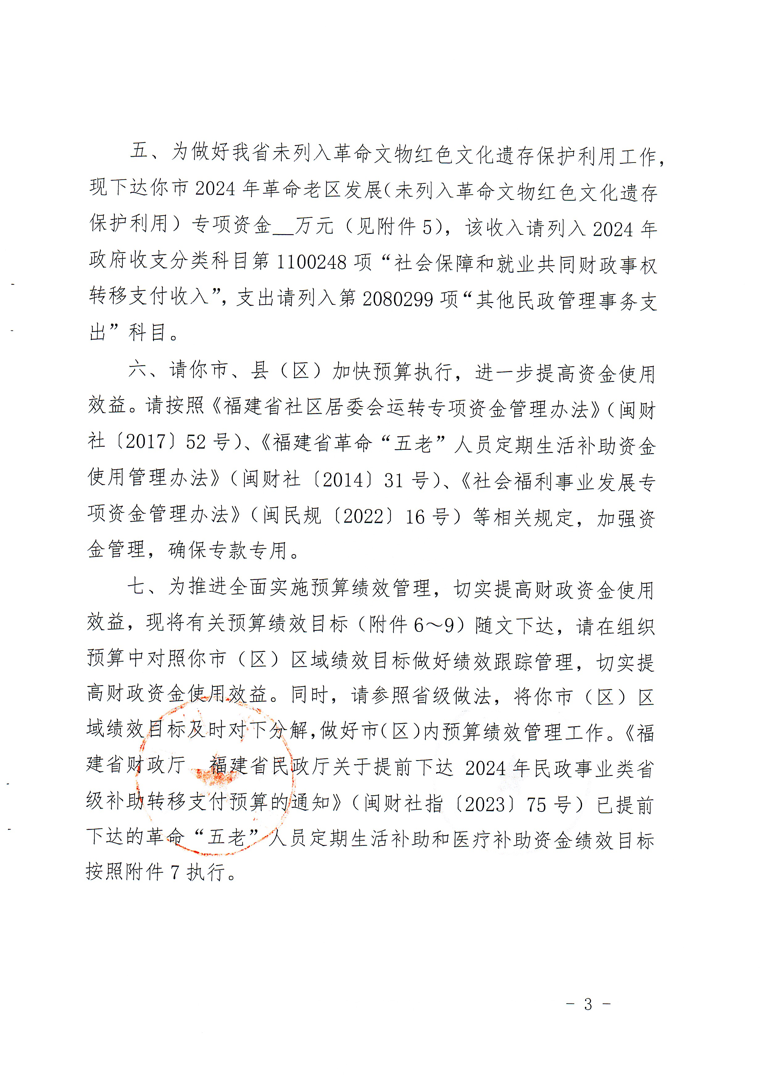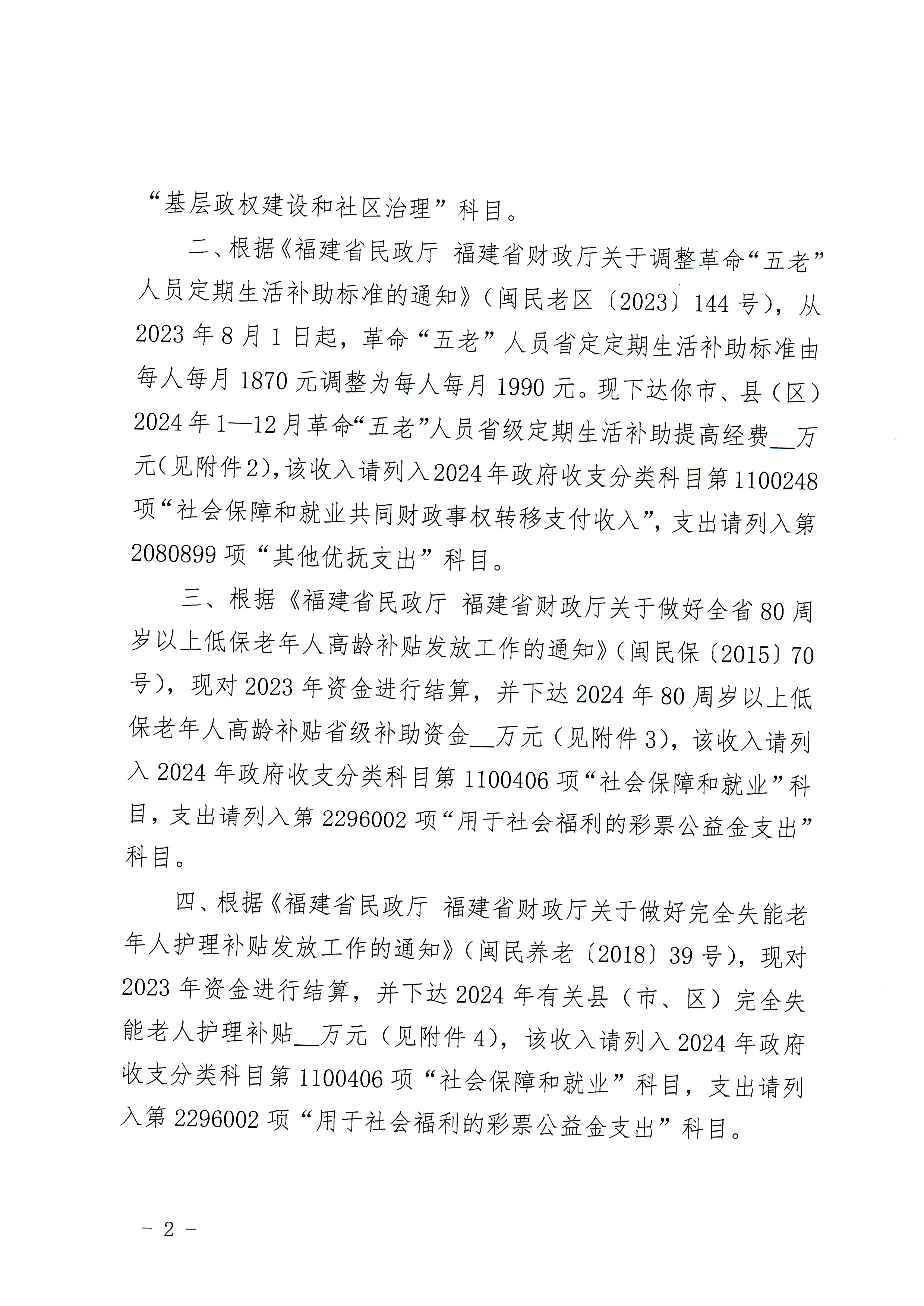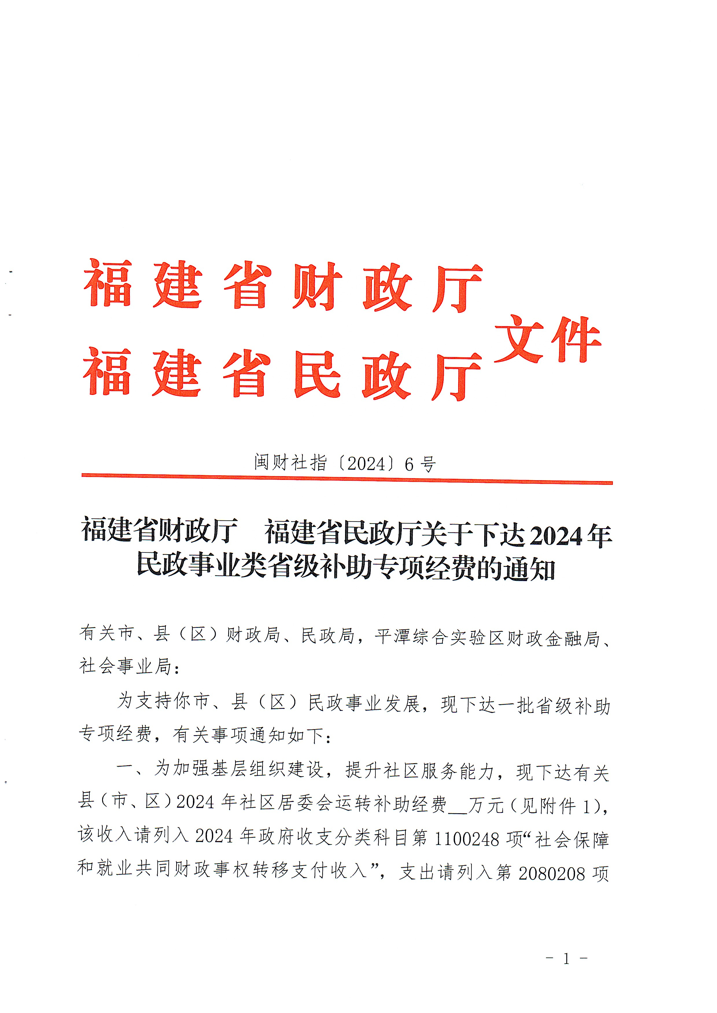 福建省财政厅 福建省民政厅关于下达2024年民政事业类省级补助专项经费的通知