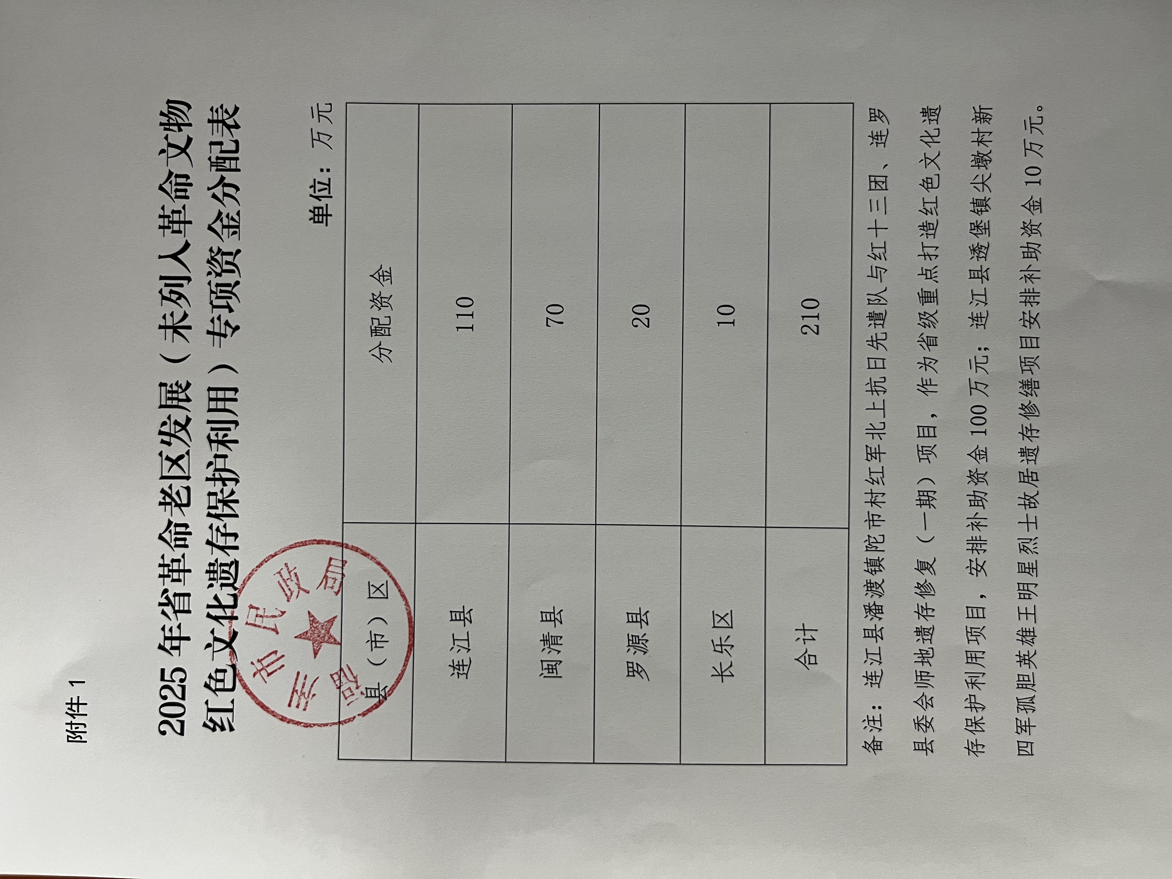 2025年省革命老区发展(未列入革命文物红色文化遗存保护利用)专项资金分配表