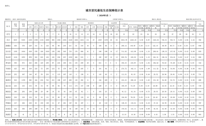 2024-03福州市城市居民最低生活保障统计表