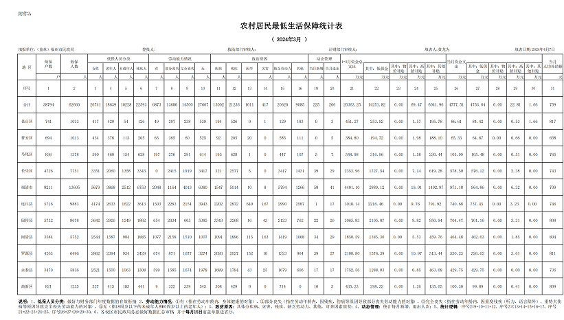 2024-03福州市农村居民最低生活保障统计表