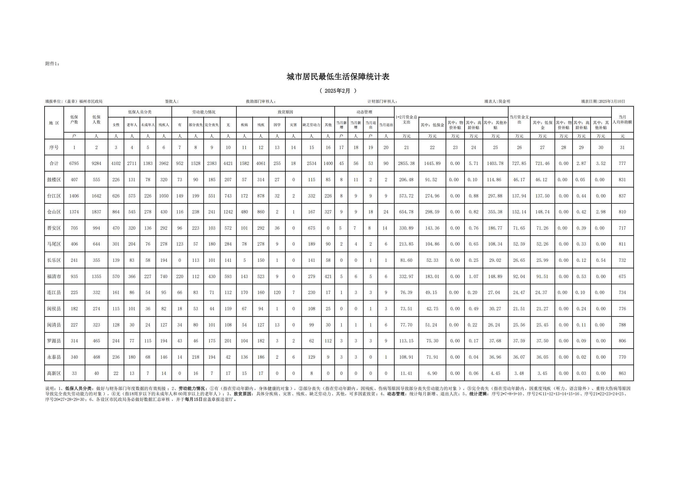 2025-2福州市城市居民最低生活保障统计表
