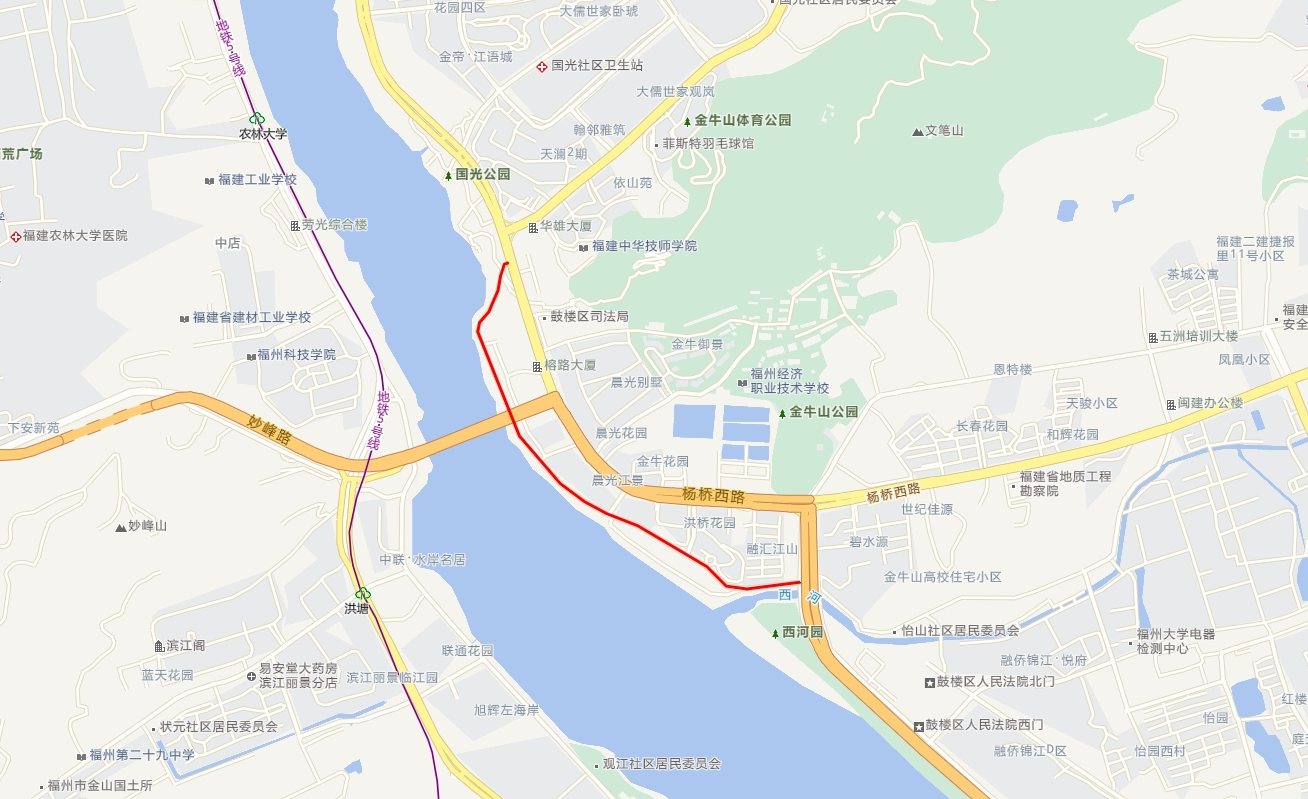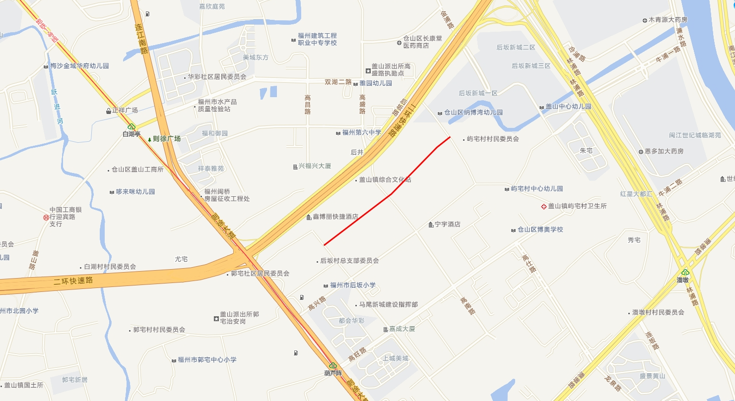18.超功路(Chāogōng Lù):长450米,宽20米。北起盖山路,南至玉湖路。该道路通往仓山区历史文物保护单位超功寺,故取名“超功路”。