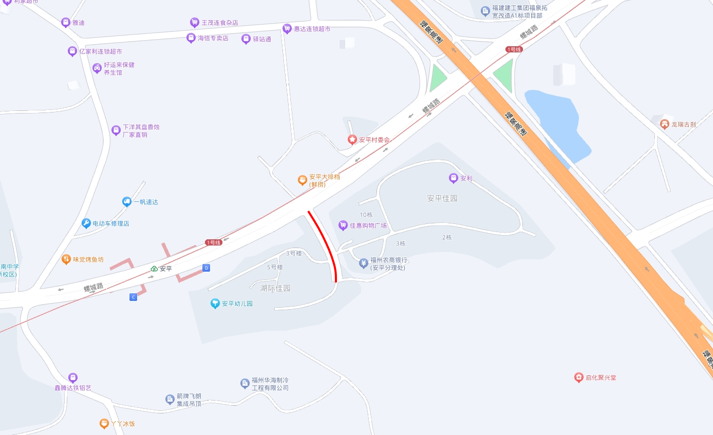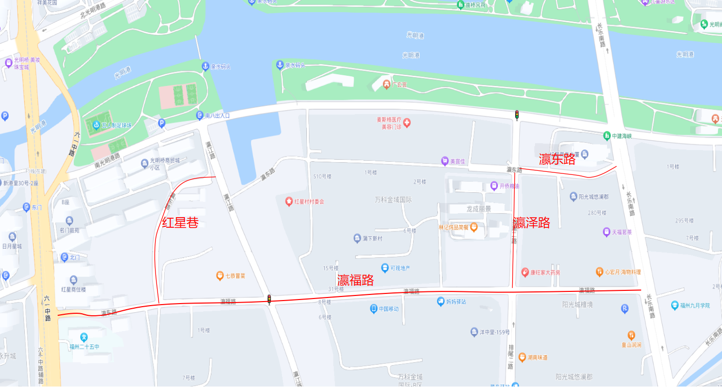8.瀛福路(Yíngfú Lù,变更起讫点):长1000米,宽10米。东起长乐南路,西至六一中路。