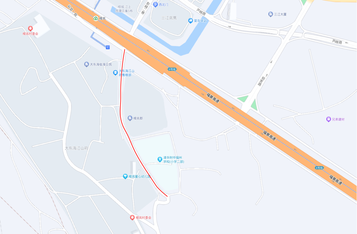 24.樟平路(Zhāngpíng Lù):长500米,宽18米。北起福泉高速辅道,向东折向南至绍宽路。该路段位于原樟岚村内,故取名“樟平路”,寓意“平安樟岚”。