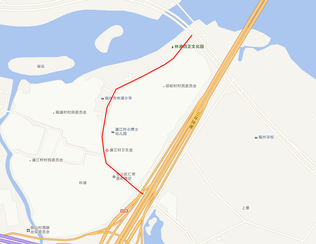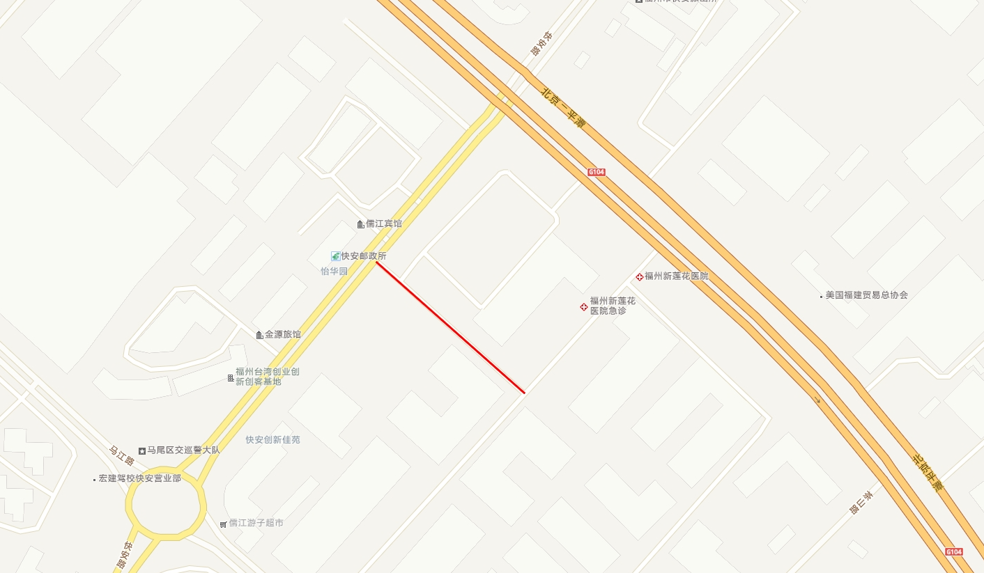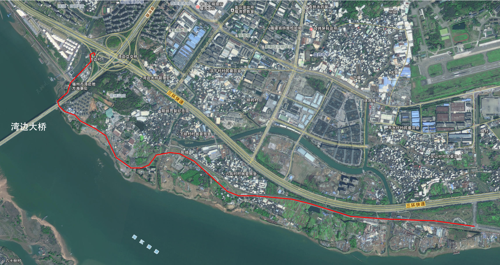 28.螺江西路(Luójiāng Xīlù,变更起讫点):长4300米,宽20米。西起湾边立交桥入口,东接南台岛环岛路。