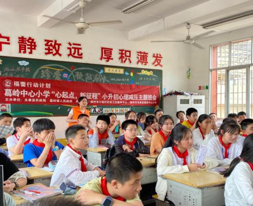 为了营造一个积极、健康、热烈、朝气蓬勃的学习氛围,让葛岭中心小学六年级学生面临升学压力时学会宣泄焦急,烦躁等不良情绪,2021年5月11日下午,福州市小桔灯社会工作服务中心携手福州市永泰县葛岭中心小学,为六年级1班和2班近100名学生开展“心起点,新征程”小升初心理减压主题班会,帮助他们减压放松,用更好的状态迎接学习生活。