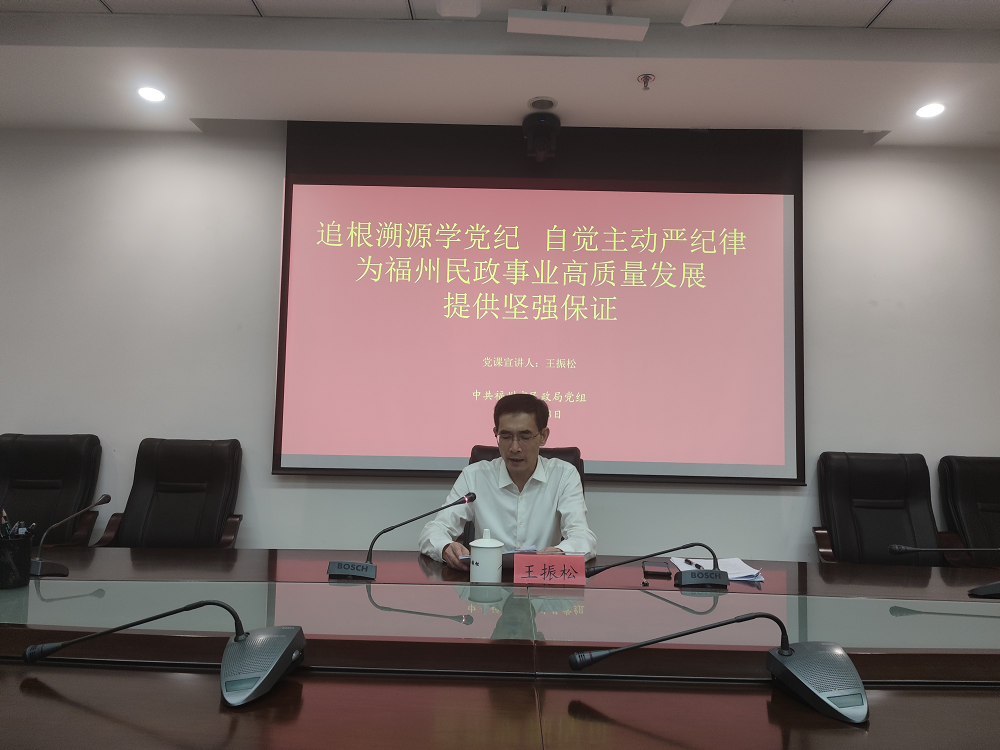 读书班中,局党组书记、局长王振松以“追根溯源学党纪,自觉主动严纪律,为福州民政事业高质量发展提供坚强保证”为主题,围绕“习近平总书记关于党的纪律建设重要论述的形成条件,深化对这一重要论述内在意蕴的认识”与“深入学习贯彻新修订的《中国共产党纪律处分条例》 ”2个方面开展授课,引导民政党员干部强化纪律意识,进一步增强政治定力、纪律定力、道德定力、抵腐定力。