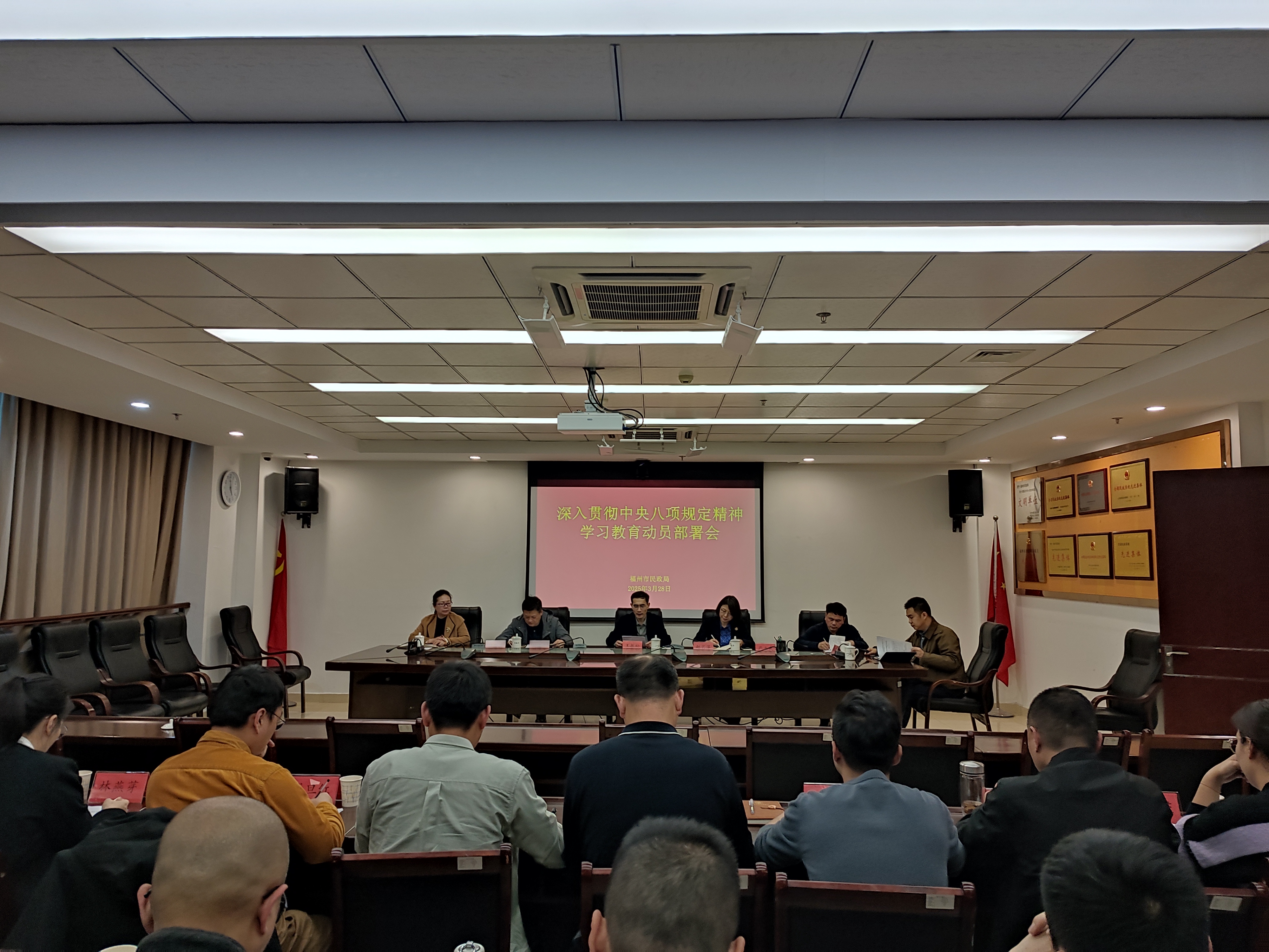 会议指出,开展深入贯彻中央八项规定精神学习教育,是以习近平同志为核心的党中央作出的重大决策部署,广大民政干部要把思想和行动统一到党中央决策部署上来,切实做好学习教育各项工作,不断加固落实中央八项规定精神的堤坝,以作风建设新成效为福州民政事业高质量发展注入强大动力。